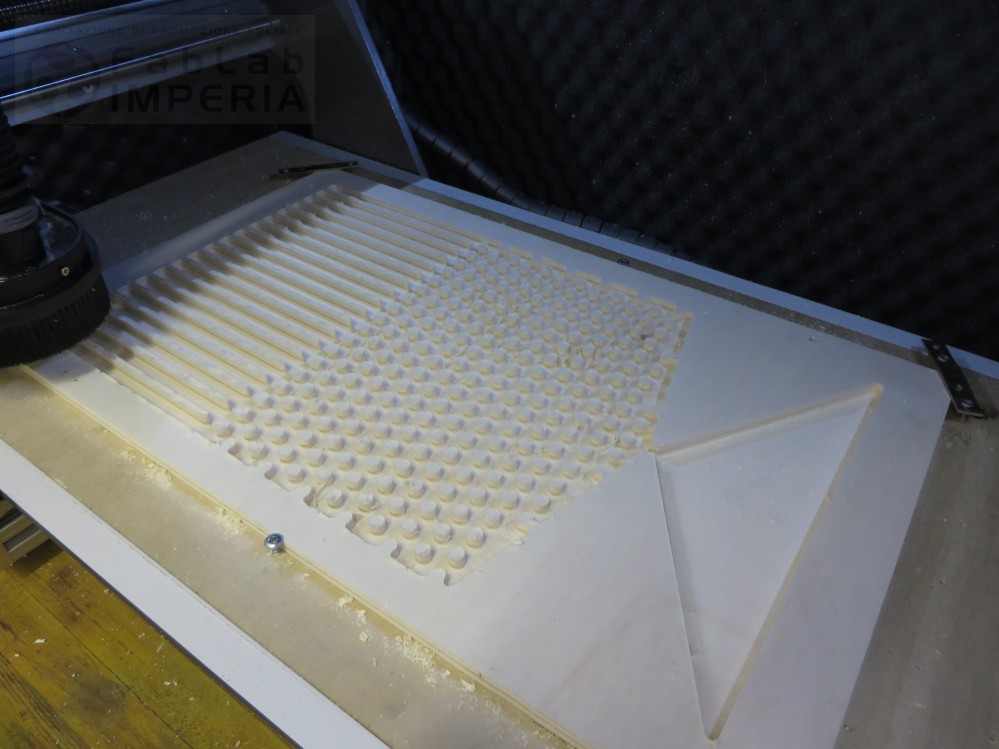 La lavorazione per il momento è eseguita con fresa da 6 mm a 4 taglienti a 18.000 rpm con affondi da 4mm.